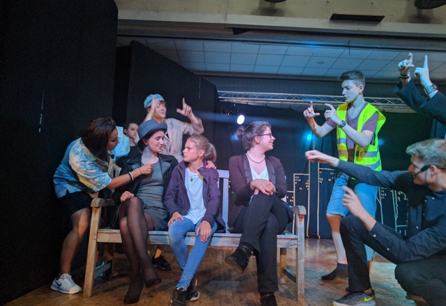 Zusammen haben wir als Koblenzer Ortsgruppe, bestehend aus acht Schauspielenden und einer Regisseurin im Alter von 18 bis 27 Jahren, das Stück ausgewählt, inszeniert und interpretiert.