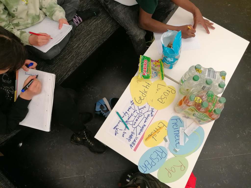 Raum für kreatives Schreiben: Seit 2019 bieten wir kostenlose Poetry-Workshops für Kinder und Jugendliche an, um ihnen einen Raum für kreatives Schreiben zu ermöglichen. Wir wollen den Spaß am Schreiben weitergeben und Poetrys, als Zugang der persönlichen Ausdrucksmöglichkeit aufzeigen!